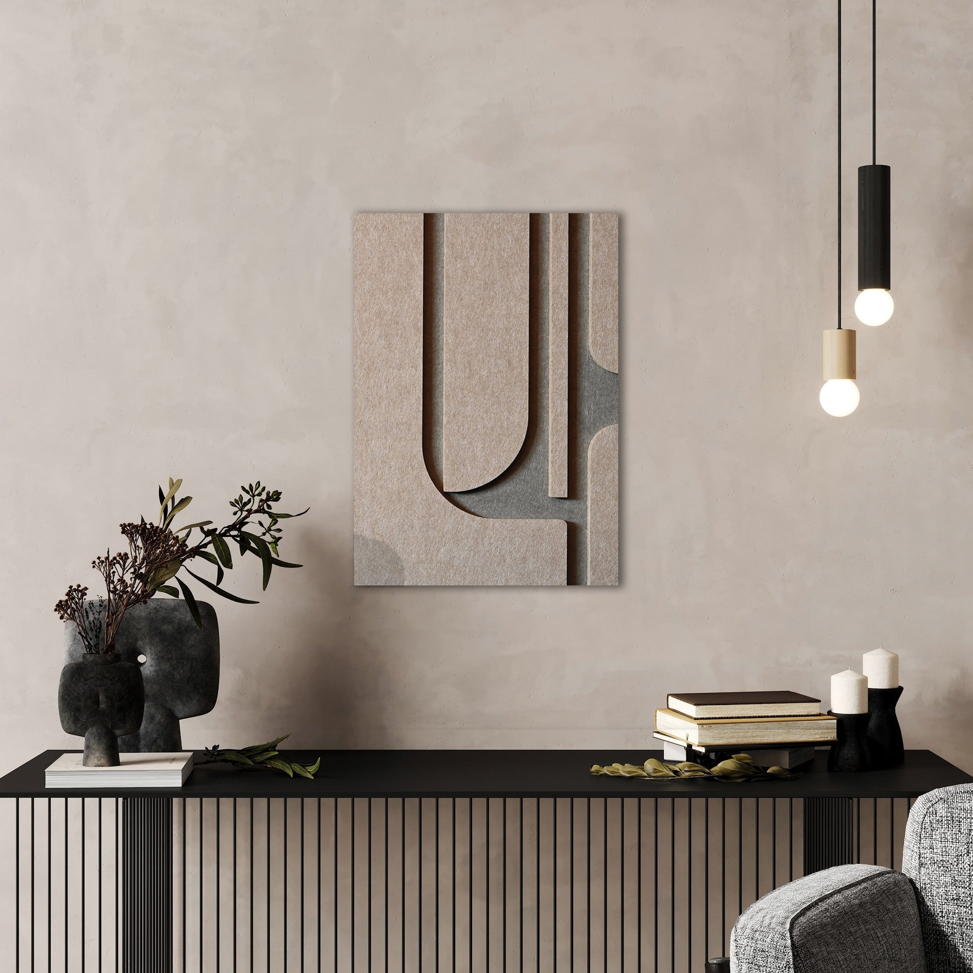 De Abstract vilt wandpanelen is waar kunst en duurzaamheid samenkomen. Met zijn organische lijnen en natuurlijke kleurschakeringen brengt dit paneel diepte en rust in elk interieur. Het ontwerp heeft een subtiel reliëf dat, afhankelijk van het licht, steeds een ander spel van schaduw en textuur laat zien. Een echte blikvanger die modern design combineert met milieubewuste materialen.