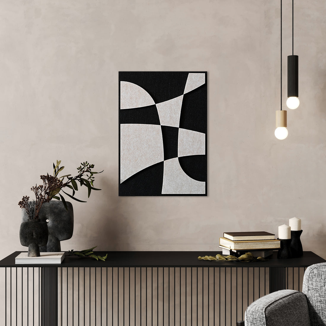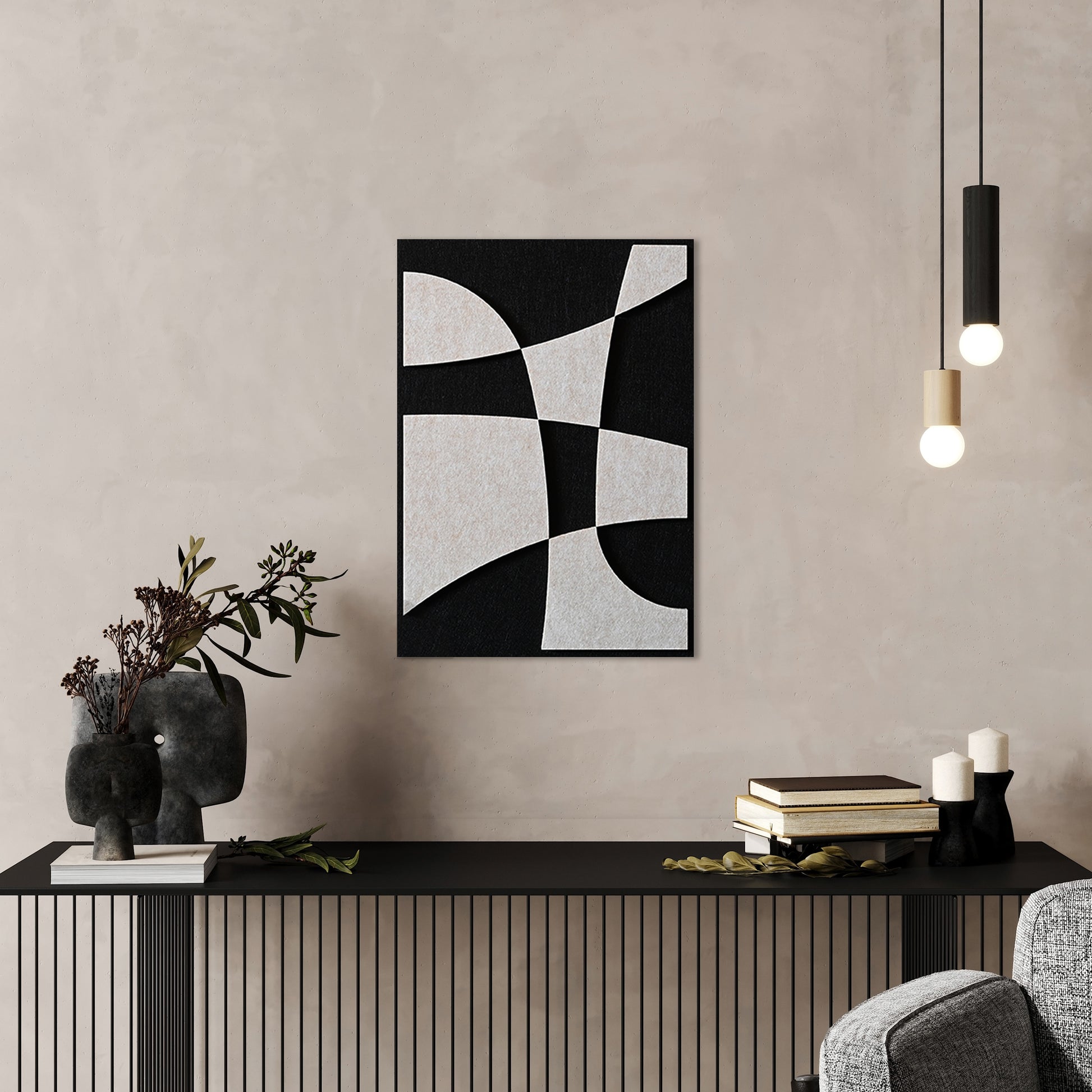 - Gebruik meerdere panelen voor een grafisch wandpatroon met diepte.