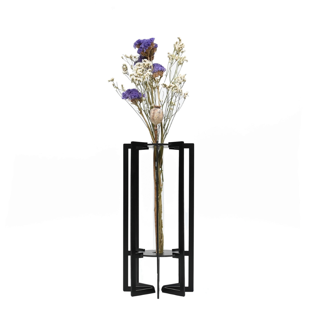 Het stevige frame houdt een glazen reageerbuisje vast waarin je droogbloemen, kunstbloemen of een klein vers bosje perfect tot hun recht komen. Dankzij de minimalistische uitstraling past de Square in elk interieur, van modern tot klassiek.